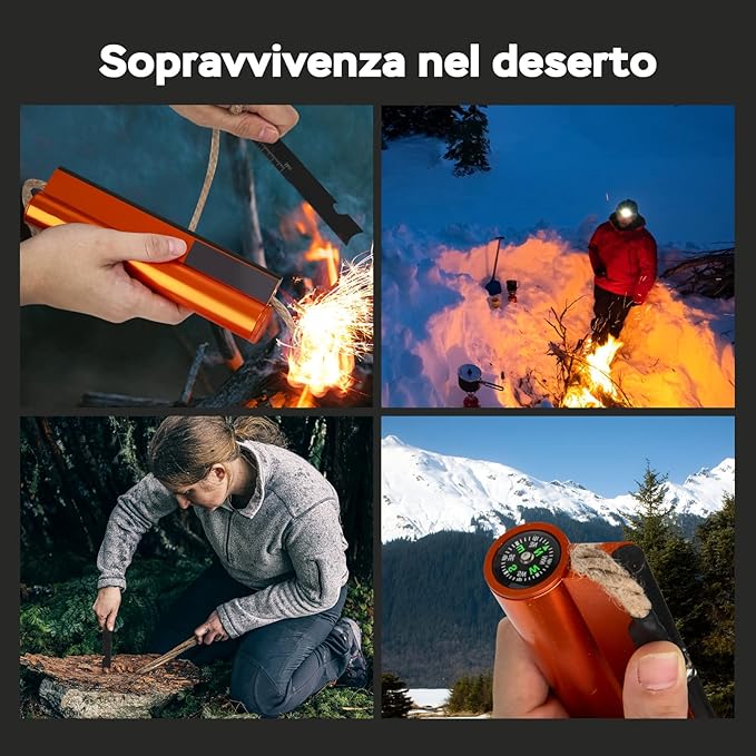 - ⭐【PROFESSIONAL SURVIVAL HELPER】Our multifunctional fire starter kit is a good outdoor camping partner for every camper, hiker, hunter, survivalist, adventurer and outdoor enthusiasts. This emergency survival kit includes everything you need for any situation.