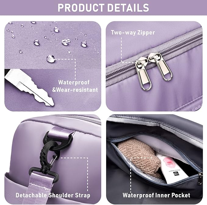 • DRY/WET SEPARATION DESIGN: It measures 19.7"(L) X 8.3"(W) X 11"(H) with large space for your gym and travel essentials. This duffel bag has a separate leakproof pocket which dividing your wet clothes, towels or cold drinks by water resistant lining. It keeps your items clean and well organized.