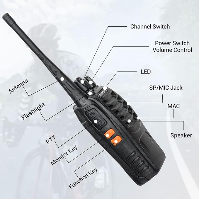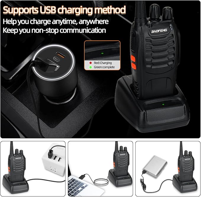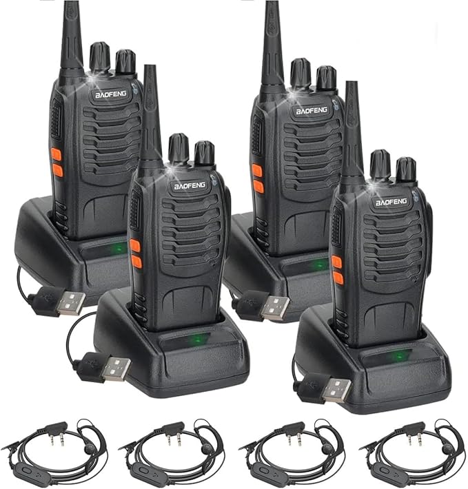 - Included Components : 4 Pack BAOFENG Walkie Talkies, Programming Cable, Earpieces