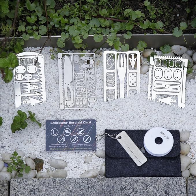 - ∝Material: Survival card is made of 304 stainless steel, hardened and corrosion resistant, contains a variety of emergency tools,a great addition to your survival kits and go bags.