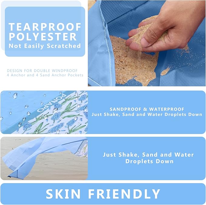 - 🌴【WATERPROOF & SANDPROOF & SCRATCHPROOF】: The beach blanket can't be punctured thanks to the high-quality, lightweight polyester material. Just shake the beach mat to have the sand and water droplets slide off with ease. For your upcoming trip, the beach mat may be conveniently machine cleaned and dried.