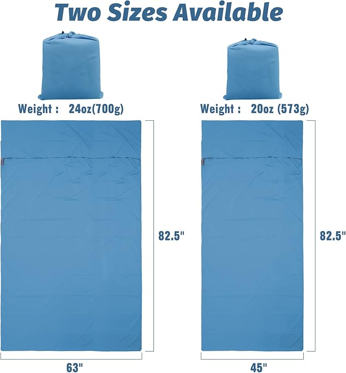 - ♥【Two Sizes Available】The sleeping bag liner has two sizes for your choose. Single 45"x 82.5" that fits one people, Double 60"x 82.5" that fits two people. The space is large enough even for different people to move around and stretch out the legs.
