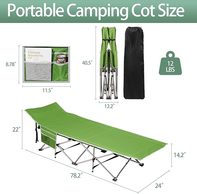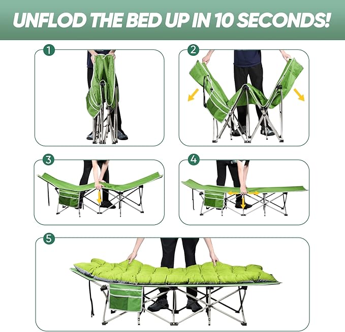- Lightweight and portable : The camping bed weighs only 12 pounds and features a no-installation, foldable one-piece design, along with a pouch that can be carried over the shoulder, so you can effortlessly carry it outdoors to the grass, the forest, the office, and wherever you want to rest