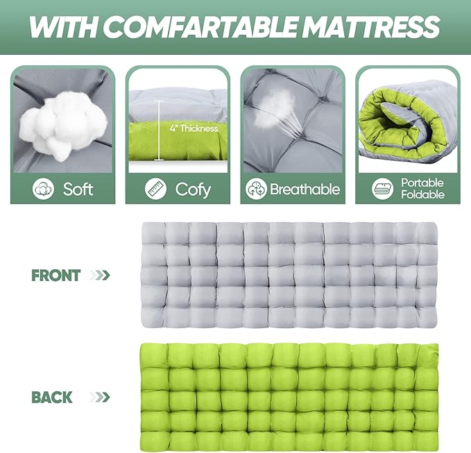 - Ergonomic design : The head of the bed has 18 ° warp, more closely fits the body curve, even without pillows can provide support for the cervical spine to ensure sleep quality; 26 inches wide bed surface, so you sleep with more turning space
