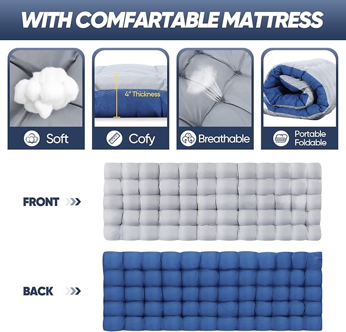 - Ergonomic design : The head of the bed has 18 ° warp, more closely fits the body curve, even without pillows can provide support for the cervical spine to ensure sleep quality; 26 inches wide bed surface, so you sleep with more turning space