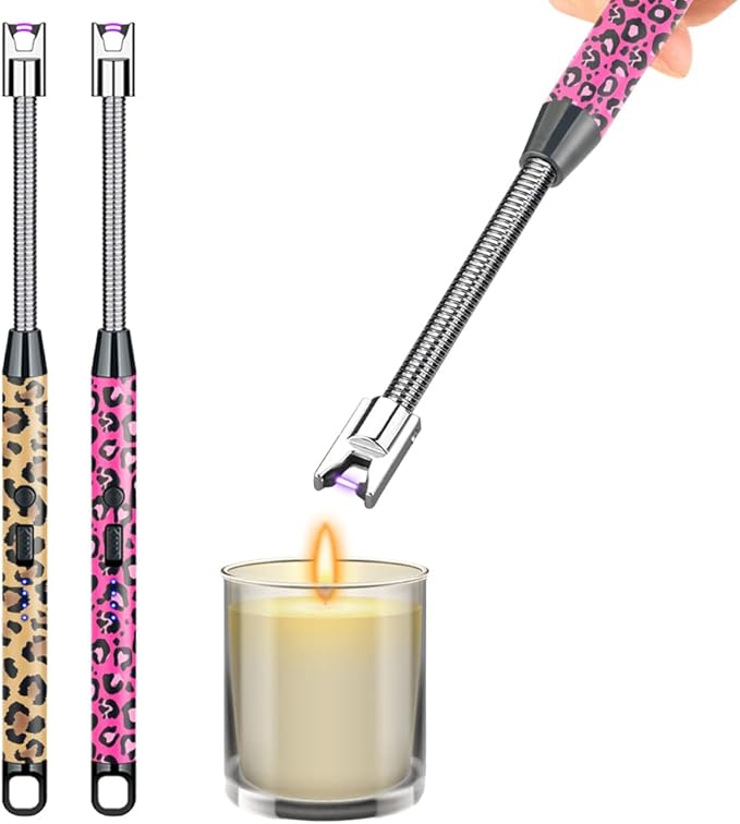 2 Pack Candle Lighter,Arc Lighter with USB Charging,Flameless Windproof,LED Battery Display,Safety Switch,Rotate 360 Degrees,for Aromatherapy,Candles,BBQ,Camping. (Leopard Print)