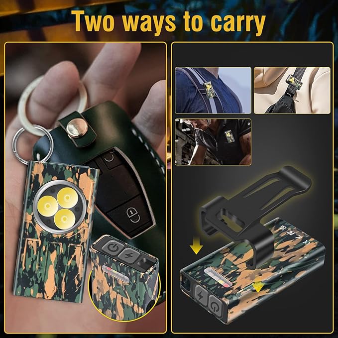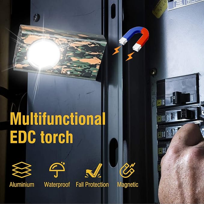 - EDC FLASHLIGHT WITH MAGNETIC➤➤ The tail of the flashlight comes with magnetic suction to quickly attach the flashlight to the surface of ferrous objects, freeing your hands.Clip design,you can clip the flashlight firmly in the pocket,backpack,hat,to make the work more efficient.Equipped with a portable keychain,can be hung on the backpack,more convenient to use.