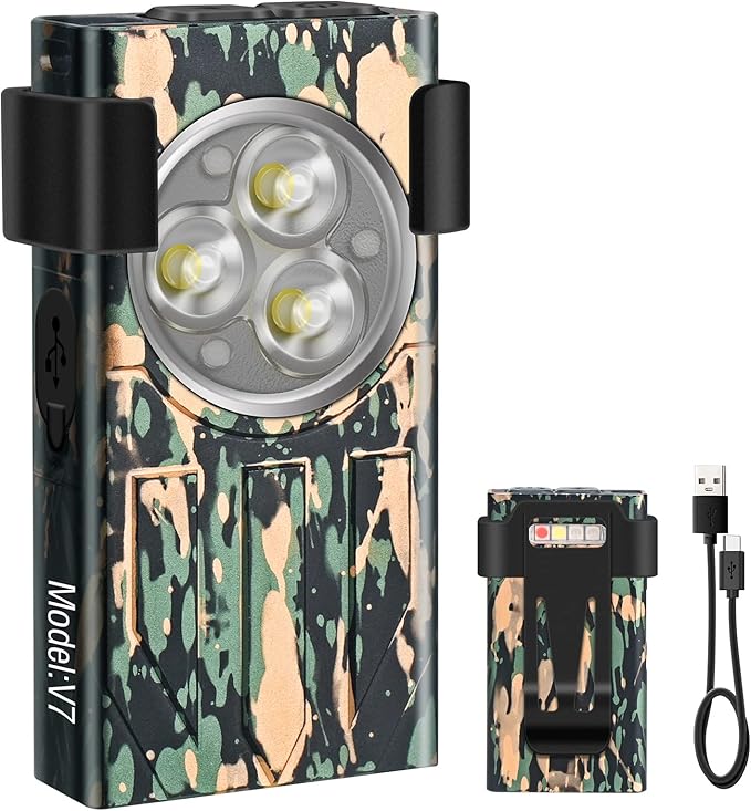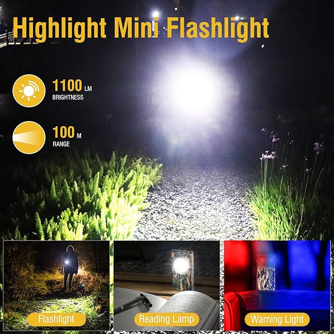 V7 Mini Powerful EDC Flashlight High Lumens 1100LM LED Rechargeable Flashlight with Magnetic and Cilp,Small Pocket Flash Light with Red Blue UV Light