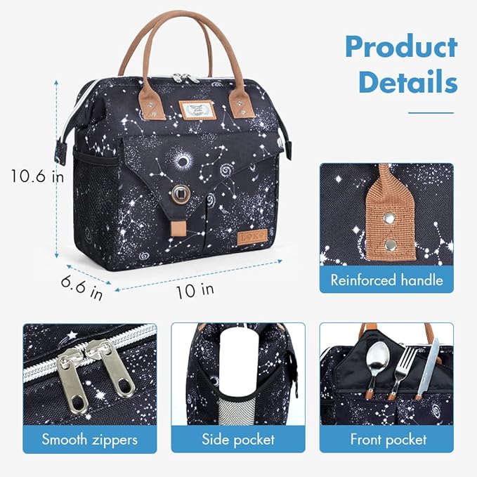 - Leakproof Lunch Tote Bag: With upgraded heat welded insulated aluminum foil, the women lunch box can prevent the liquid from leaking out, and easy to clean.