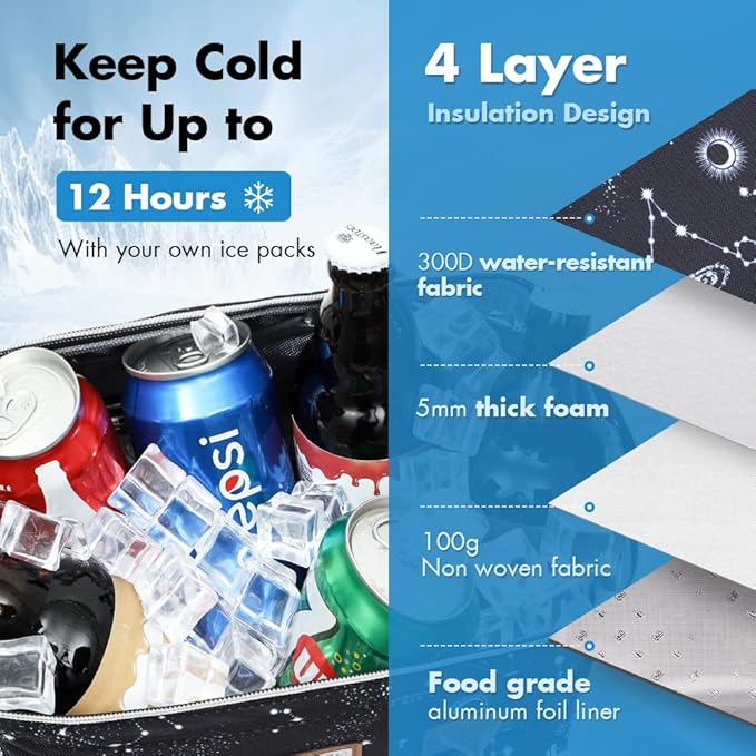 - Long-term Insulation: Made of 4 layers high-quality materials, the lunch bags help to keep your lunch cold or warm 4-6 hours, and keep chilled for 10-12 hours with YOUR OWN ice packs. Suitable for women and men carry it to work, picnic, outdoor activities.
