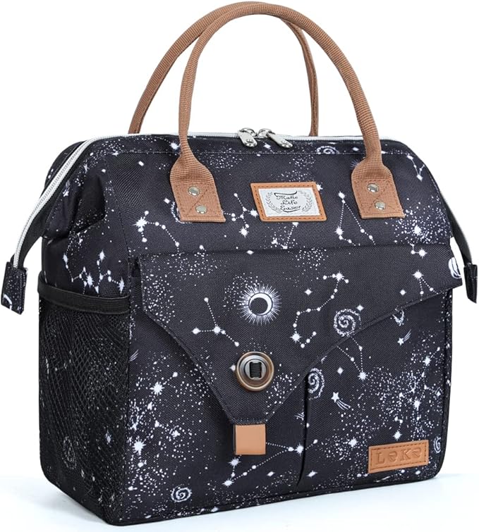Lekesky Lunch Box Women Men Lunch Bag Wide-Open Lunch Tote Bag, Black