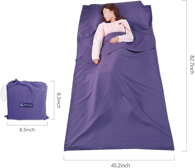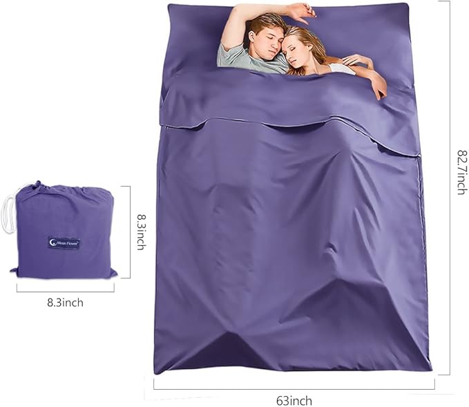 - 【Lightweight & Easy To Carry】- Our sleeping bag liner comes in two specifications: 45.2x82.7 inches=20oz (573g) and 63x82.7 inches=23oz (650g). Despite its generous size, it can be easily folded into a compact 8.3x8.3-inch pocket when not in use. Travelers will find it convenient to pack in their backpacks without adding extra weight, while business people can effortlessly carry it in their handbags.