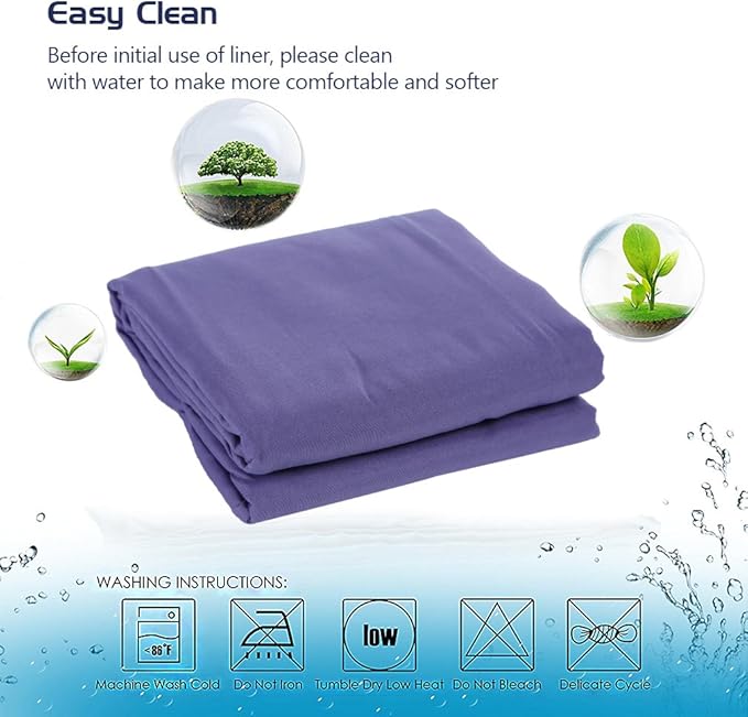 - 【Generous Size & Vibrant Colors】- Available in Mysterious Blue, Gemstone Blue, and Navy Blue, our sleeping bag liner comes in two sizes: 45.2x82.7 inches and 63x82.7 inches. It comfortably accommodates sleepers up to 82.7 inches tall, allowing even tall individuals to move, stretch their legs, and turn comfortably in their sleeping bag or hotel bed.