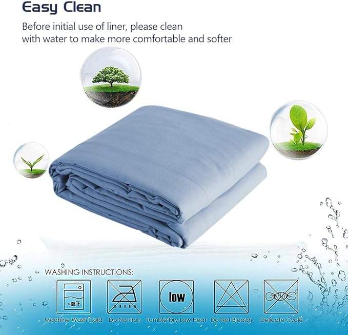 - 【Generous Size & Vibrant Colors】- Available in Mysterious Blue, Gemstone Blue, and Navy Blue, our sleeping bag liner comes in two sizes: 45.2x82.7 inches and 63x82.7 inches. It comfortably accommodates sleepers up to 82.7 inches tall, allowing even tall individuals to move, stretch their legs, and turn comfortably in their sleeping bag or hotel bed.