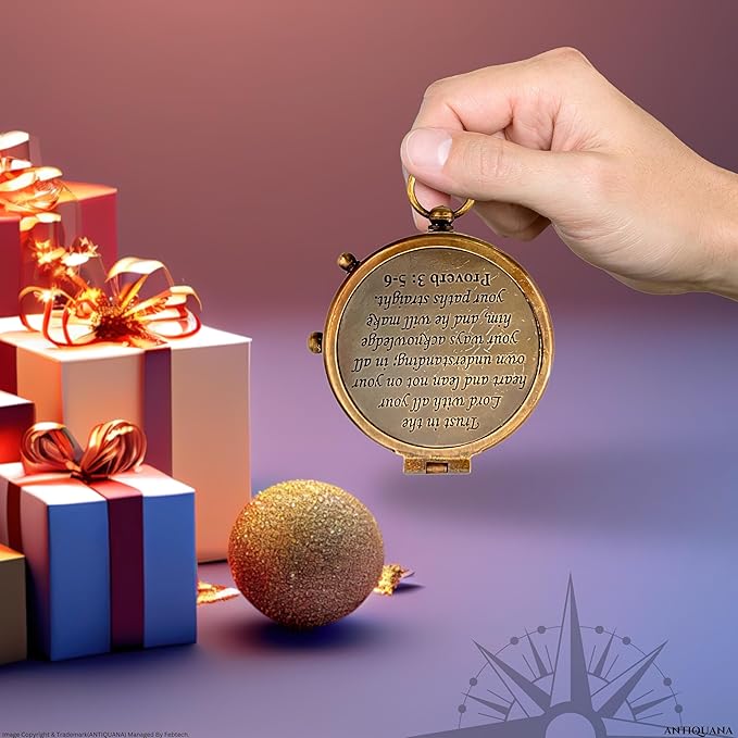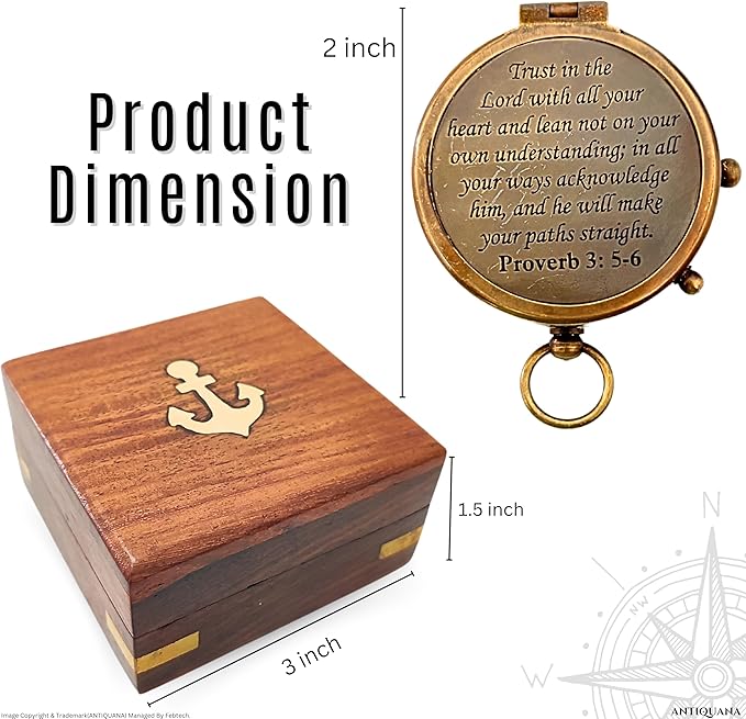 Trust in The Lord with All Your Heart - Proverbs 3:5-6 Quote Engraved Compass with Wooden Box or Leather case, Greeting Card, Gift Compass, Graduation Day Gifts 2025 for Women Men Boys Girls