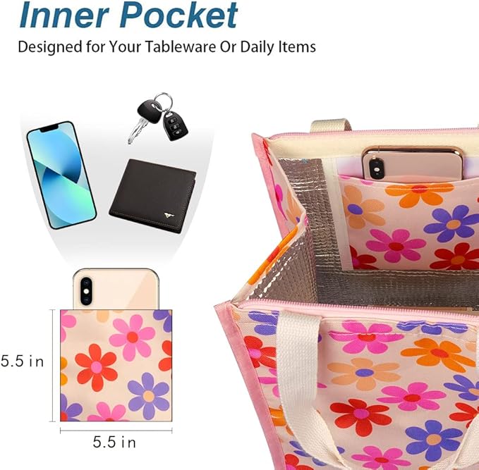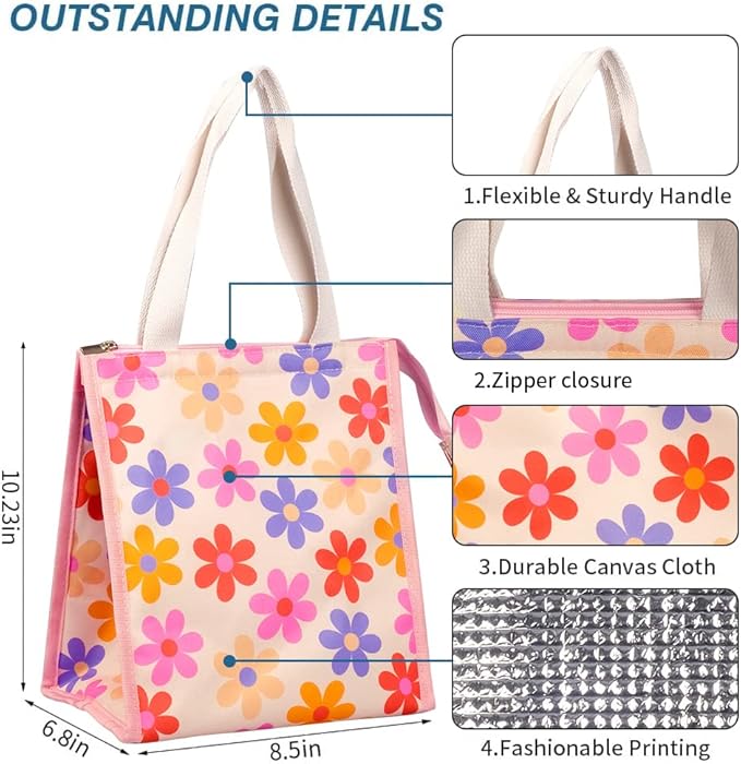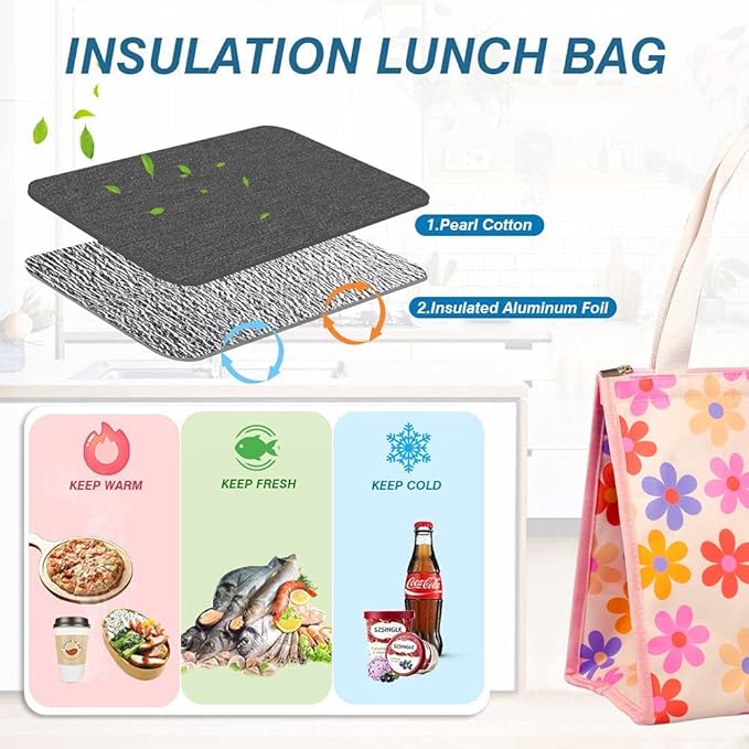 - INSULATED & FOOD-GRADE MATERIAL: Our reusable lunch tote bags are made of Oxford cloth and aluminum foil, renowned for their excellent insulation and temperature retention properties, keeping your food cold/hot for hours. The bags feature tight stitching for durability and sturdiness, ensuring they are tear-resistant. They effectively maintain the temperature of your food.