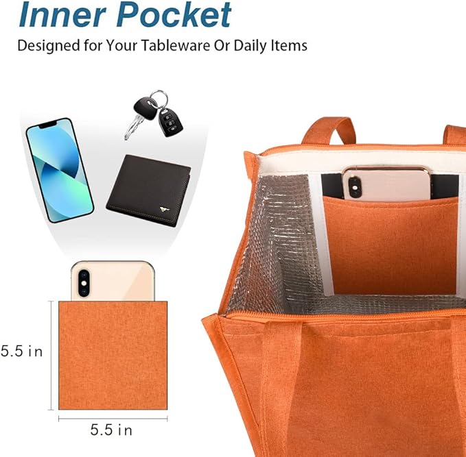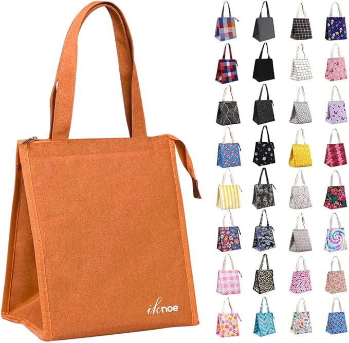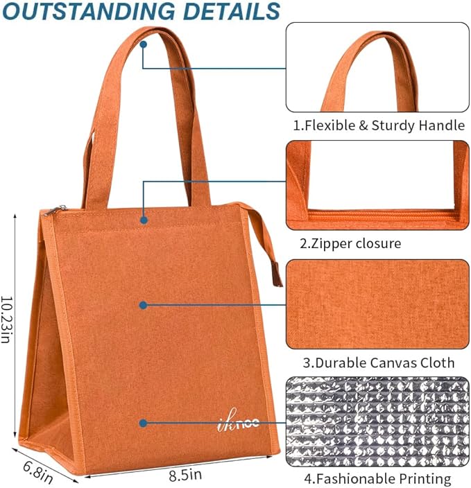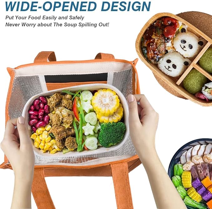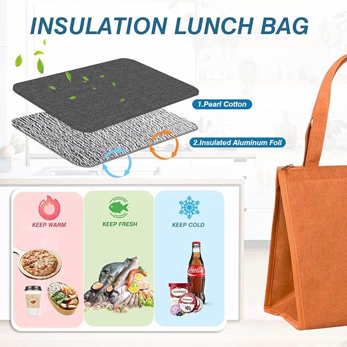 - INSULATED & FOOD-GRADE MATERIAL: Our reusable lunch tote bags are made of Oxford cloth and aluminum foil, renowned for their excellent insulation and temperature retention properties, keeping your food cold/hot for hours. The bags feature tight stitching for durability and sturdiness, ensuring they are tear-resistant. They effectively maintain the temperature of your food.