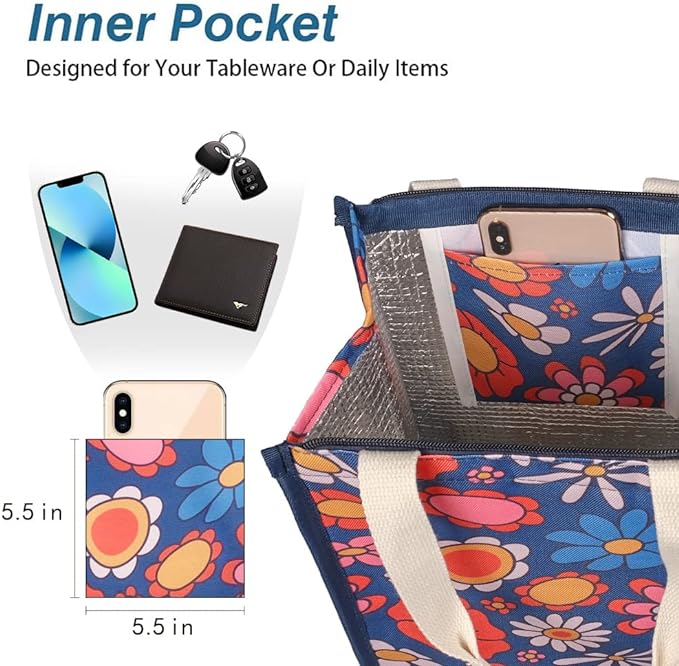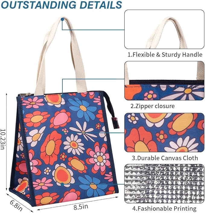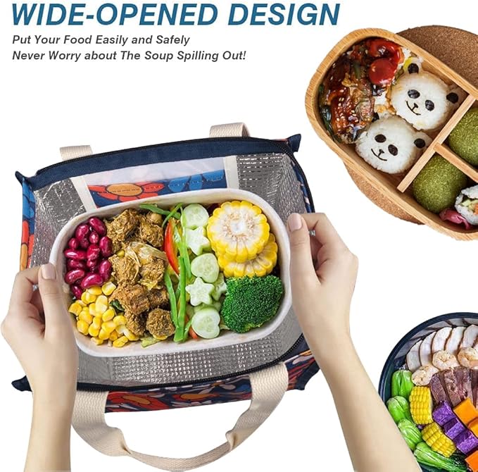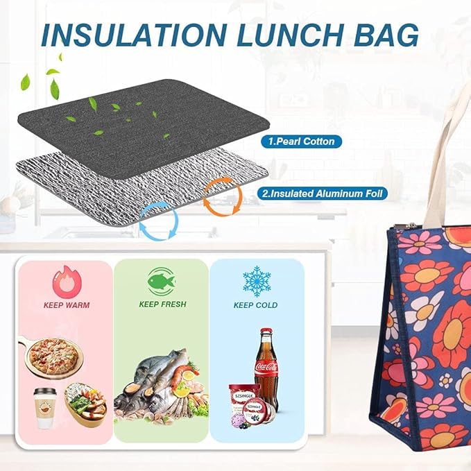 - INSULATED & FOOD-GRADE MATERIAL: Our reusable lunch tote bags are made of Oxford cloth and aluminum foil, renowned for their excellent insulation and temperature retention properties, keeping your food cold/hot for hours. The bags feature tight stitching for durability and sturdiness, ensuring they are tear-resistant. They effectively maintain the temperature of your food.