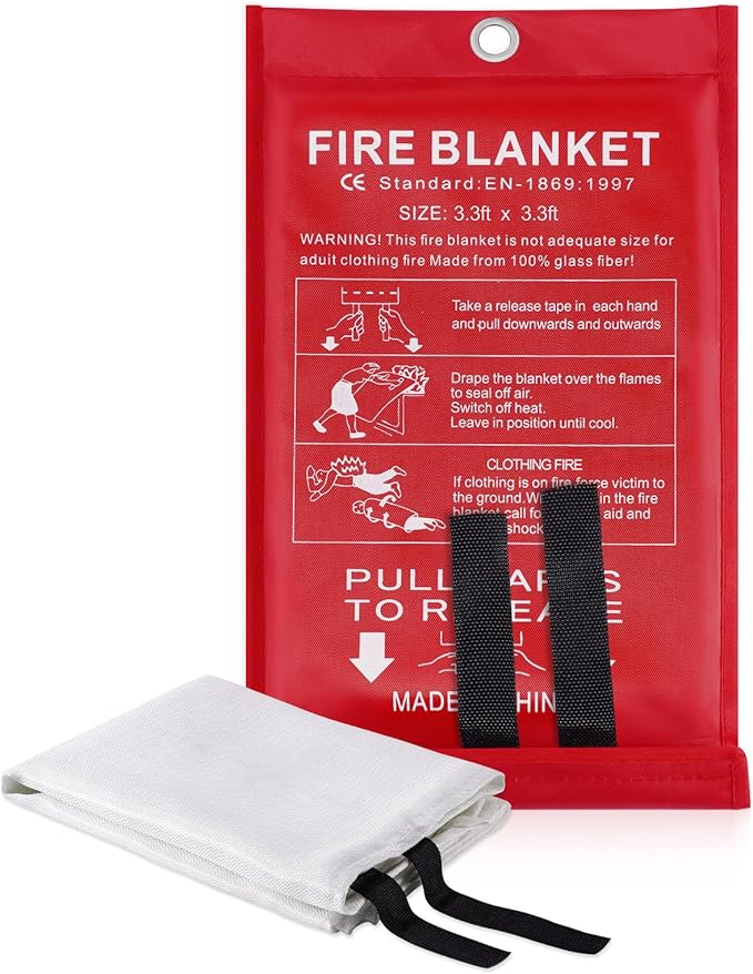 - 🔥【Multi-purpose】: Fire blanket kitchen has a variety of uses, when the object fire you can quickly cover the blanket to stop the spread of fire, you can also cover it on your body to prevent injury, fire blanket for car cover, camping kitchen, car camping, camping grill, car shelter, campfire grill.Of course, the fire blanket can only put out small fires, such as a large fire, please you promptly call the police.