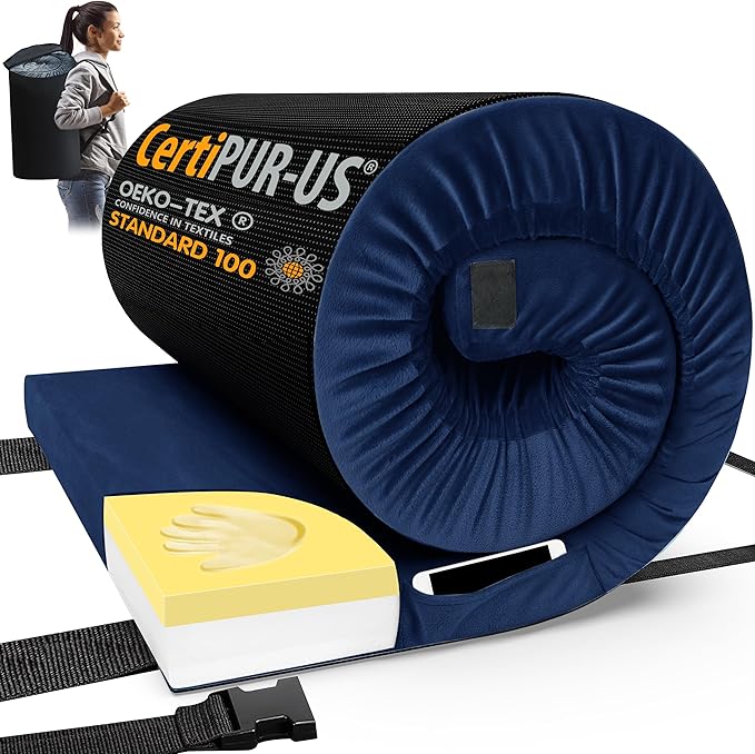 CYMULA Memory Foam Camping Mattress Pad, CertiPUR-US Sleeping Mat, Portable Roll Up Mattress for Adults, Camping Bed Pads for Sleepover, Car Bed with Travel Bag