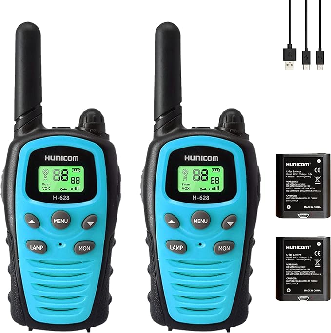 - Chargeable Walki Talki - Compatible with durable Li-ion rechargeable battery and 2-in-1 USB charging cable to charge the two way radio. Lightweight walkie talkie body ergonomically designed to fit easily into your hands.