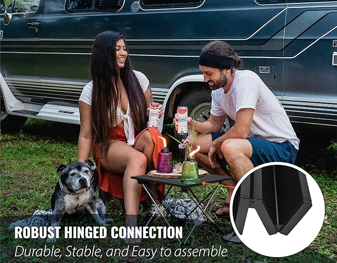 - LIGHTWEIGHT AND PORTABLE: With its lightweight and compact design, the TALU folding camp table is portable and easy to carry and store. It folds into the included carry bag and can be stored in your backpack, or wherever you need it. The small camping table provides a stable work surface for hobbyists. This portable camping table is a perfect companion with portable camping chairs or folding stools. You can even use it as a folding beach table, or a tent table while sitting on beach mats or camping mats.