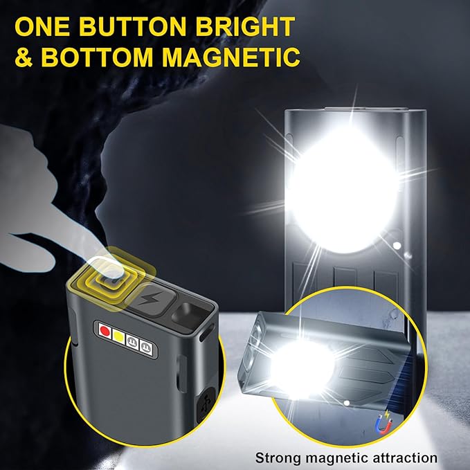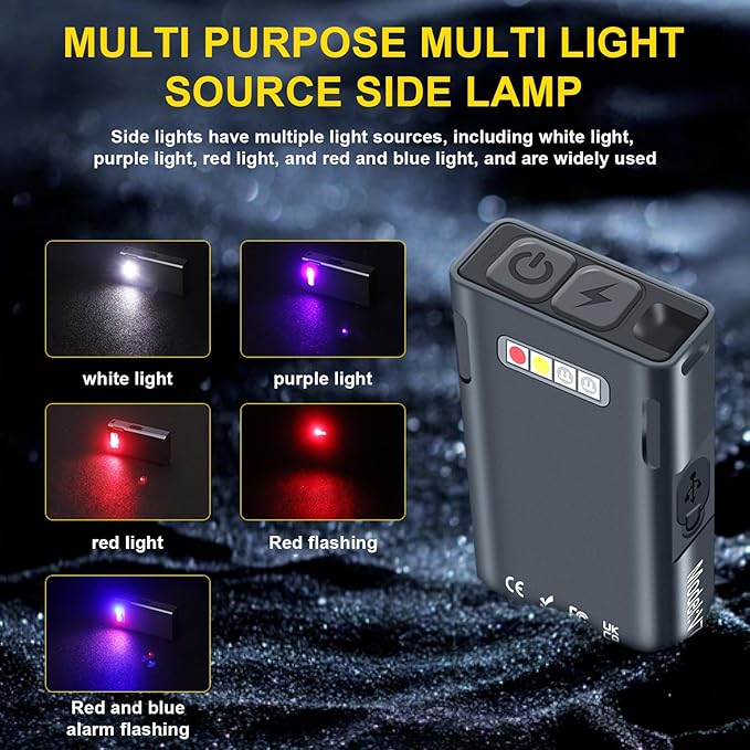 - 【Unique Portable Design】Side lights red and blue warning, UV purple light banknote detection, red light SOS, compact and lightweight Keychain, magnetic suction function.Keychain quick release and strong magnet base , plastic keychain is small and light, fast and easy to disassemble. The tail is equipped with a magnetic suction effect, which can be firmly attached to metal objects and easily free your hands, meet the needs of our workshop operations, car maintenance, outdoor camping.