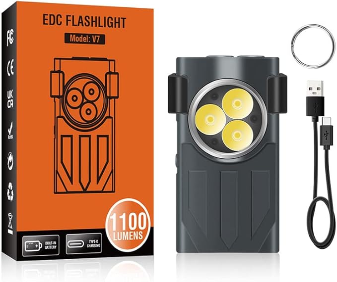 - 【3 LED High Brightness 】3 main lights 351B, side lights 3030 red, blue, white, purple, and SMD four light sources. This keychain flashlight can emit 1100 lumens lights at maximum. 175° Wide-angle lens Lightweight, high-quality lighting. The selection of thin and light lenses can restore the true color, and it also has a wide-angle floodlight for a wide range of lighting.