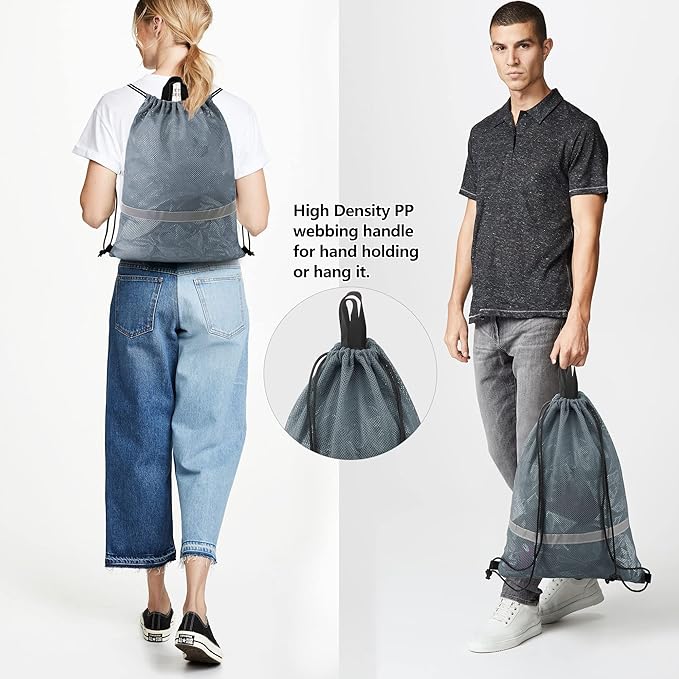 • Machine Washable & Two PP Webbing Handles & Collapsible: Large mesh drawstring backpack is machine washable and can dry quickly. Then our sports bag will come entirely clean and save your time. Two handles of our gym drawstring bags adopt high density PP webbing, suitable for hand holding or hang it. Our string backpack bag is easy to fold, without taking up much space. It's a perfect mesh gear backpack for any indoor or outdoor activities.
