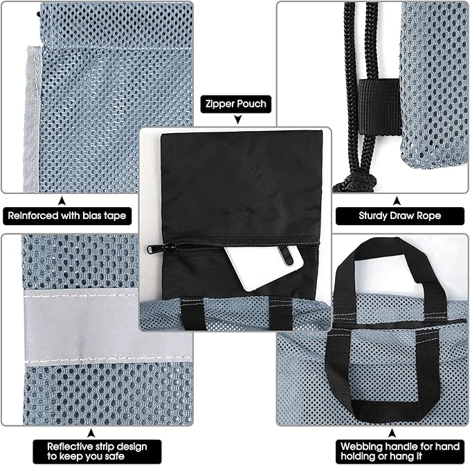 • Inner Zipper Pocket & Reflective Strip: Our mesh drawstring bag has a zipper pocket. The pocket (6.7'' x 7") of our drawstring backpack can put your value items, like phones, keys, wallets, etc, and add the utility rate of space. Our string backpack bag extra adds a reflective strip, which enhances the high visibility in dark or dusk. Greatly reduce your chance of being hit.