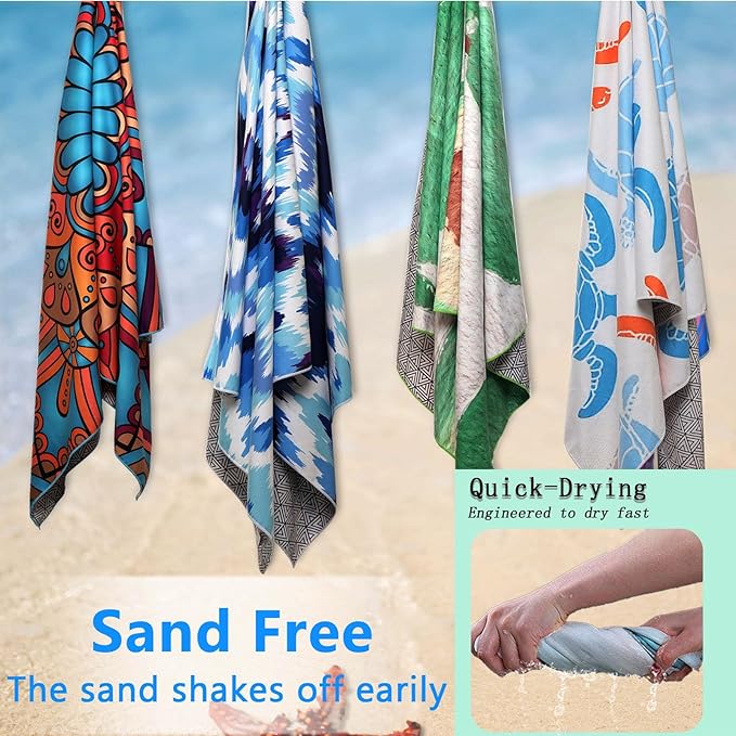 - 【Quick-Drying】The highly absorbent and quick-drying microfiber material of our beach towels for adults allows you to enjoy a dry towel in no time after use. Ideal for those who want to spend more time basking in the sun or splashing in the pool, our extra-large dry and sand-free towels will exceed your expectations. Make the most of your beach day with our quick-drying beach towel set!