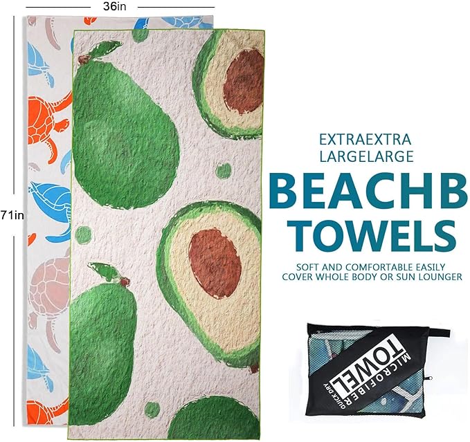 - 【Trendy Designs】Our beach towels feature a wide range of trendy prints and designs, allowing you to choose the style that suits your personality and fashion taste. Whether you prefer vibrant colors or subtle patterns, our oversized microfiber beach towels will effortlessly elevate your beach look. Discover the perfect beach towel in our collection today!