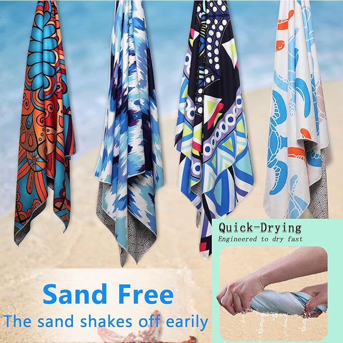 - 【Quick-Drying】The highly absorbent and quick-drying microfiber material of our beach towels for adults allows you to enjoy a dry towel in no time after use. Ideal for those who want to spend more time basking in the sun or splashing in the pool, our extra-large dry and sand-free towels will exceed your expectations. Make the most of your beach day with our quick-drying beach towel set!