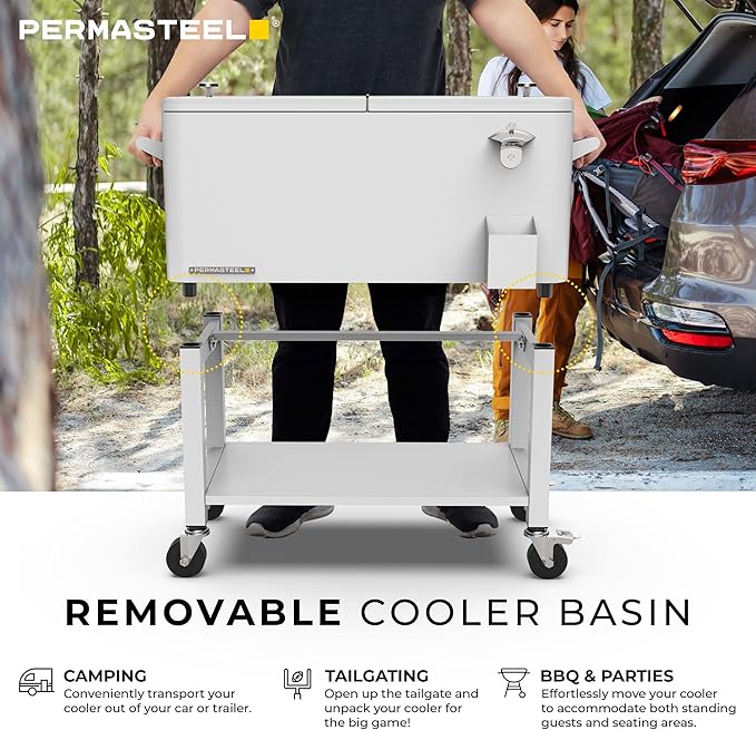 - Detachable & Portable Design - Take the party anywhere you go with the Permasteel outdoor cooler featuring a detachable and portable basin. This drink cart is perfect for beach days, park barbecues, birthdays, holidays, and more.