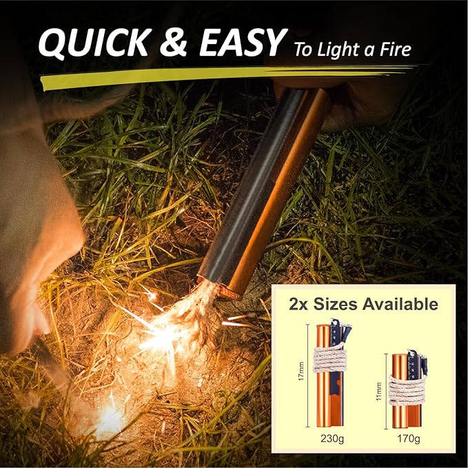 - 💪【SUPER LIGHT & EASY TO CARRY】This quick-start flint and steel fire starter kit is in a perfect size for travelling, camping, hiking, backpacking, hunting, boating and outdoor emergency preparedness - whenever and wherever you need it. Weight:7 Inch (8.2oz), 4.5 Inch (5.5oz)