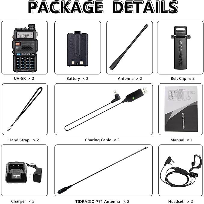 - [Classic BaoFeng UV-5R Bundle]: All you need is in one box! This great value set included 2 x 1800mAh Batteries, 2 x Earpieces( help you communicate in private way ). Suitable for new users who want to get their first ham radio.