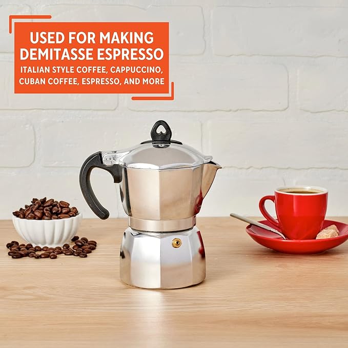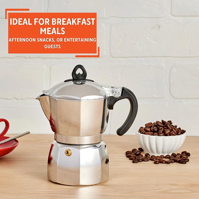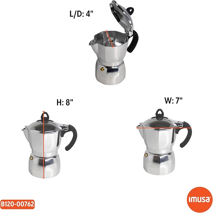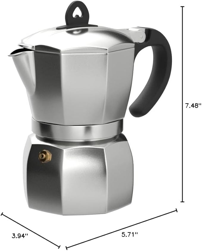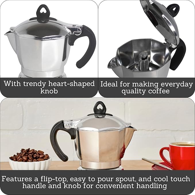 Imusa 6 Cup Stovetop Espresso Maker with Heart Shaped Knob, Silver