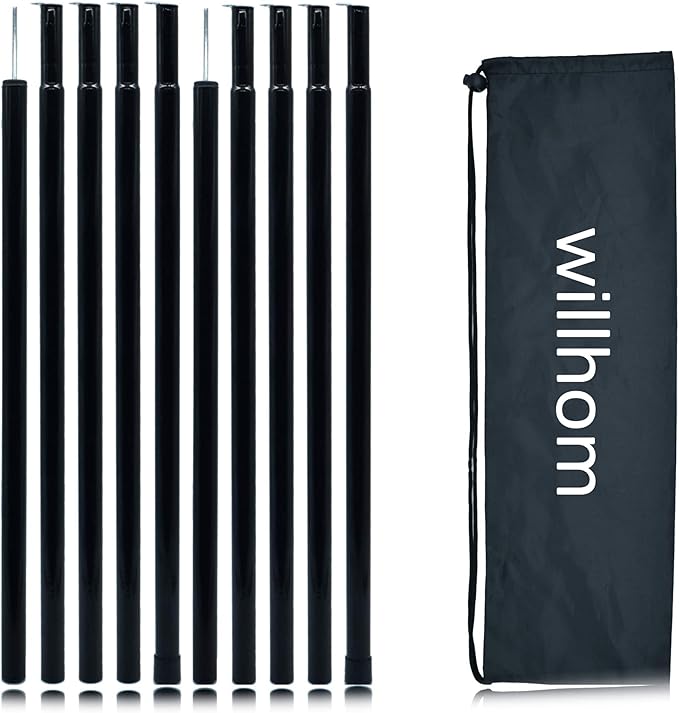Adjustable Tent Poles - Portable Steel Rods for Camping Tarps and Canopies, 2 Sets of Black Lightweight Poles for Shelter and Shade. Ideal for Backpacking, Hiking, Outdoor Adventures.