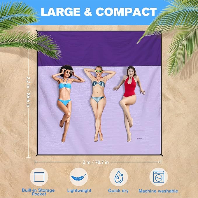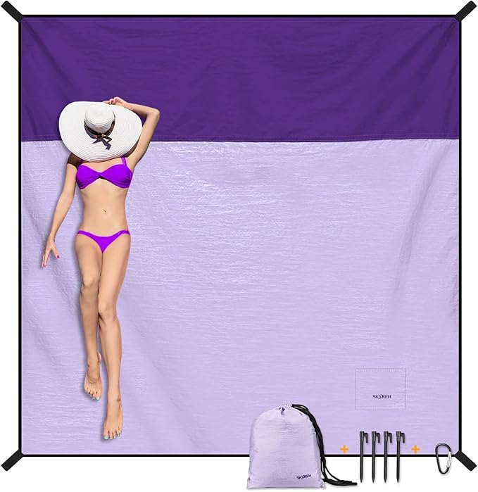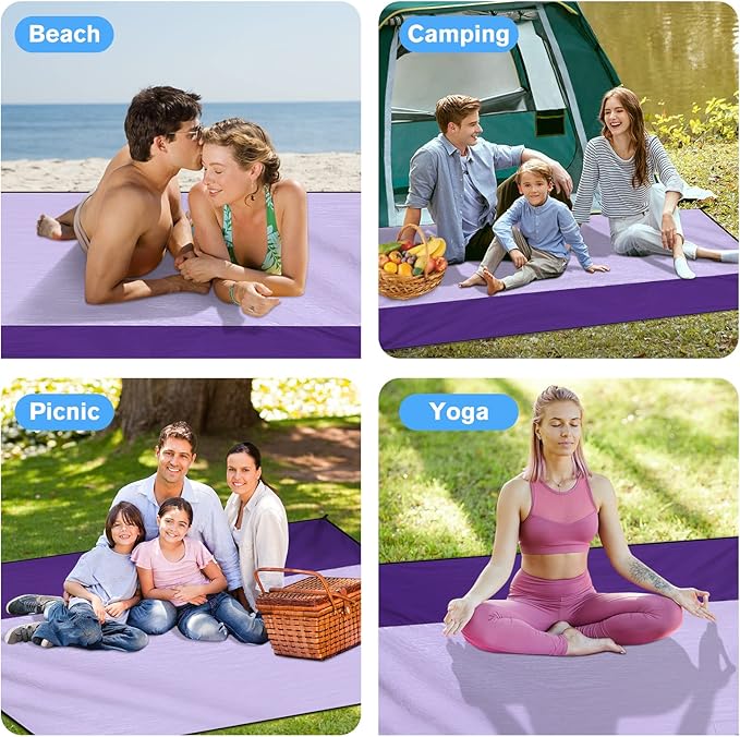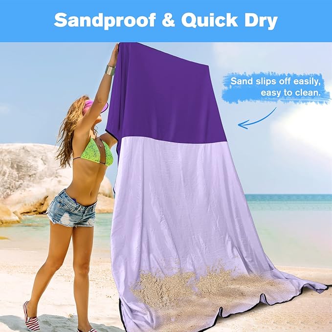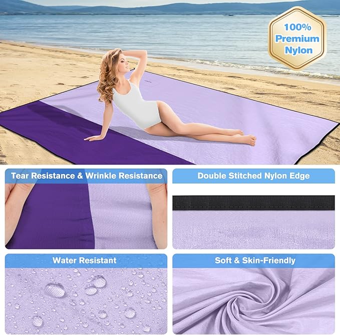 Beach Blanket Waterproof Sandproof Large Beach Mat 79" X 87", Quick Drying Durable Portable Lightweight Outdoor Nylon Picnic Blanket for Travel Camping Hiking, Purple