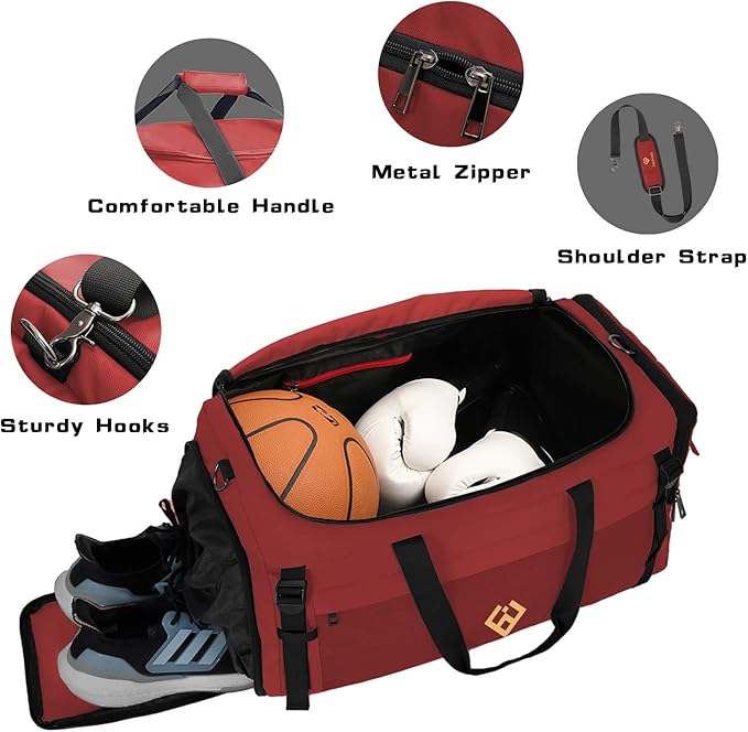 - Shoes & Water Bottle Pockets Design: This sports duffel features a separated zipper compartment on the left side for shoes, laundry or dirty gear storage. One front pockets and one inner wet pocket. Side mesh pocket fits one water bottle and one protein shaker.