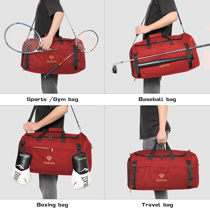 Eackrola Large Sports Gym Bag, Travel Duffel bag with Wet Pocket & Shoes Compartment for men women, 65L, Lightweight