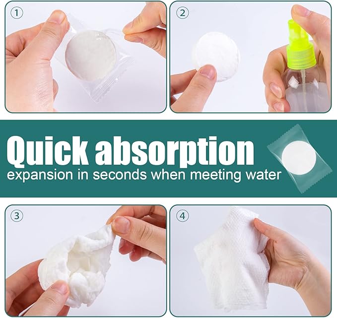 - Skin-friendly - Our towel tablets are individually packed, safe and sanitary, fluorescent-free and skin-friendly, no chipping and no shedding, so unlike the napkin, there will be no residue on your face.