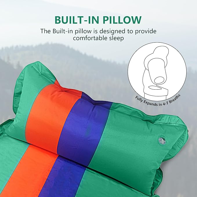 - 🌻【Enhanced Comfort with Built-in Pillows】Say goodbye to sleepless, stressful nights caused by uneven, thin, or flat sleeping pads. Our innovative design includes built-in pillows, ensuring you enjoy a cozy and restful sleep outdoors. No need to carry an extra pillow – travel hassle-free and rest comfortably anywhere, anytime. Don't let inadequate sleeping gear rob you of precious sleep; upgrade to our comfortable and convenient solution today!