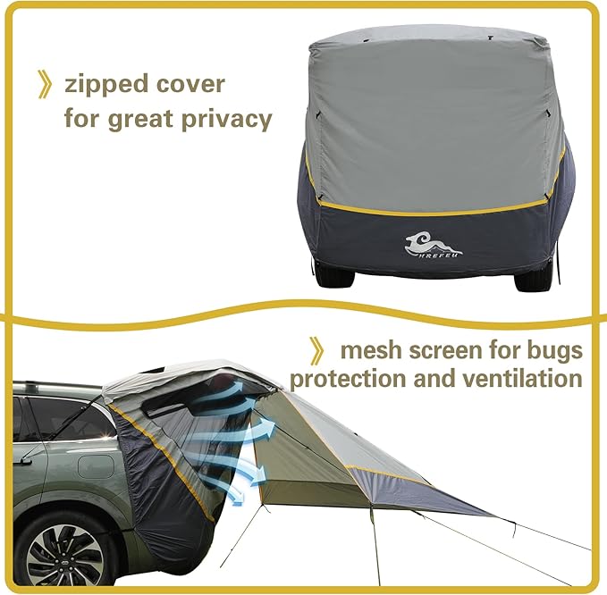 - 【Multiple Purposes】 When the SUV awning is fully opened, enjoy up to 6ft x 6ft of shade, the mesh screen allows breeze to go through the car while keeping the bugs out, also works as a cover that can be closed for great privacy.