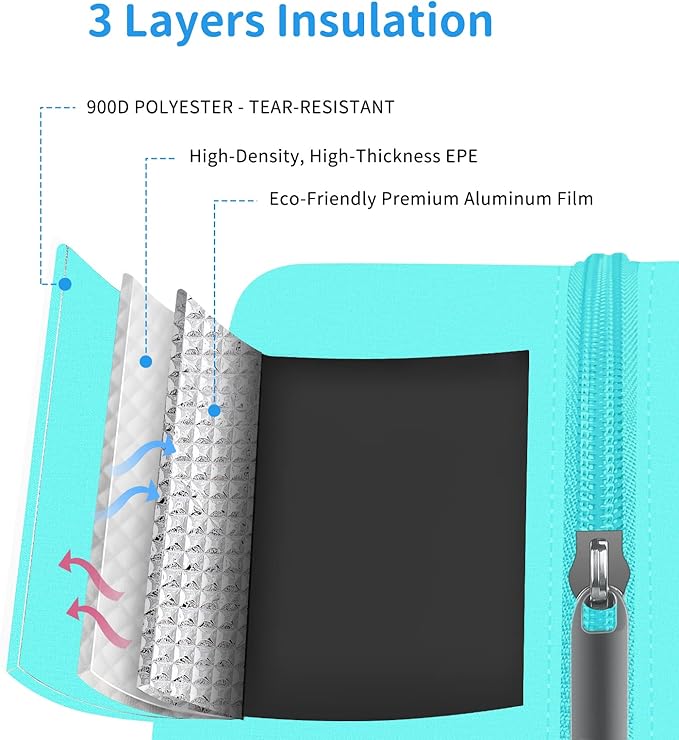 - SUPERIOR MATERIAL: Reusable lunch bag with thickened waterproof aluminum foil and three layers of insulation. Provides excellent thermal performance, durability, and easy cleaning. Keeps food cool or warm for 3-4 hours. Leakproof, lightweight, and features a soft handle for convenience