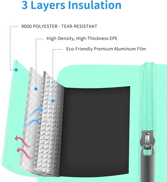 - SUPERIOR MATERIAL: Reusable lunch bag with thickened waterproof aluminum foil and three layers of insulation. Provides excellent thermal performance, durability, and easy cleaning. Keeps food cool or warm for 3-4 hours. Leakproof, lightweight, and features a soft handle for convenience