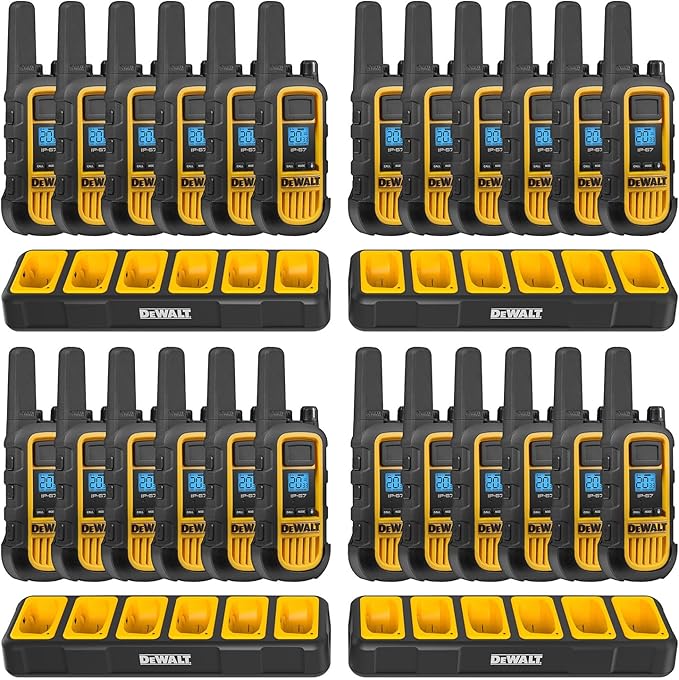 DEWALT DXFRS800 2 Watt Heavy Duty Walkie Talkies - Waterproof, Shock Resistant, Long Range & Rechargeable Two-Way Radio with VOX (24 Pack w/ 4X Gang Chargers) (4DXFRS800-BCH6)
