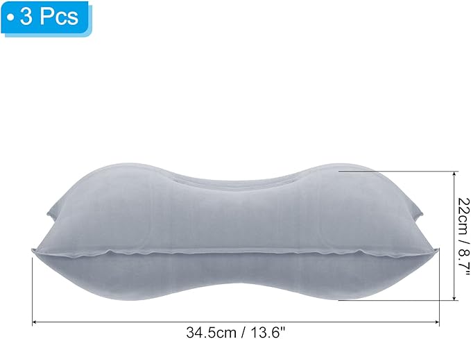 - Color: Gray; Overall Size: 34.5 x 22cm / 13.6 x 8.7 inch (L*W); Package Content: 3 x Inflatable Travel Pillow
