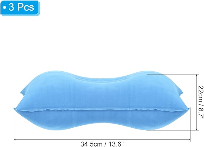 - Color: Blue; Overall Size: 34.5 x 22cm / 13.6 x 8.7 inch (L*W); Package Content: 3 x Inflatable Travel Pillow
