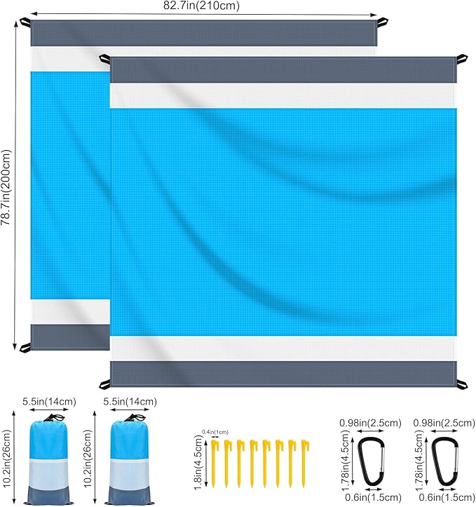 2 Pack sandproof Beach Blanket, 79"x83" Sandproof Large Beach Blanket Water Resistant Mat for Family (2-4) Lightweight Picnic Blanket, Portable Outdoor Camping Blankets